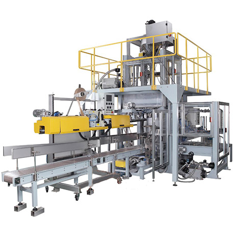 全自動(粉料)給袋包裝系統主要針對化工、食品等行業而研制的新型包裝機組。該機組具有自動供袋、上袋、稱量、填充、封口等功能。可包裝物料如顏料、面粉等粉狀、超細粉料。